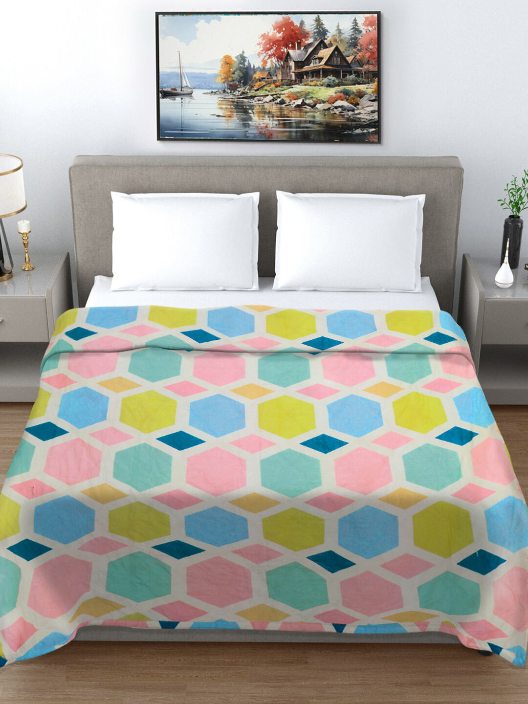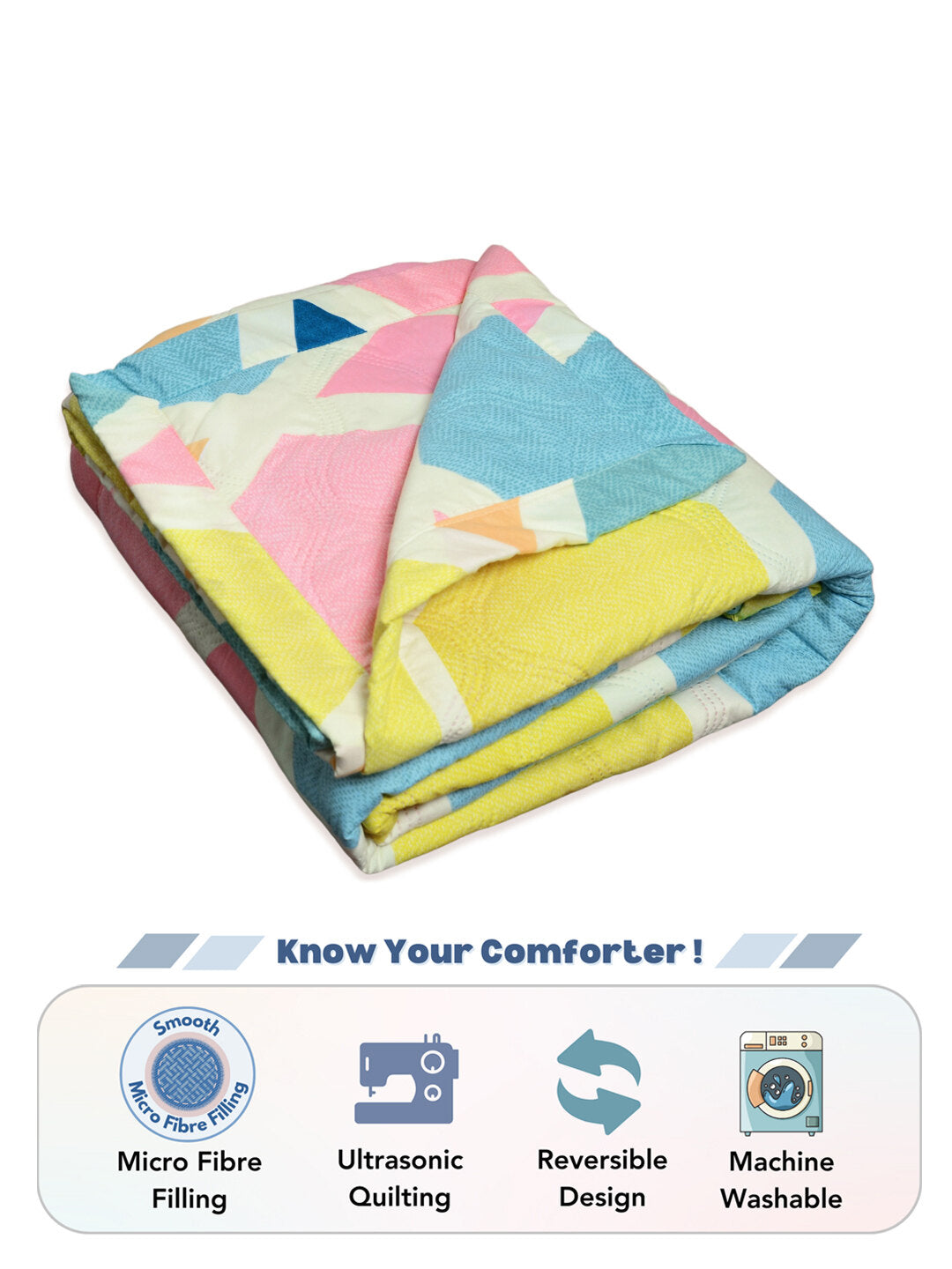FABINALIV Multicolor Geometric Ultrasonic Quilted Reversible 350 GSM AC Room Double Bed Comforter
