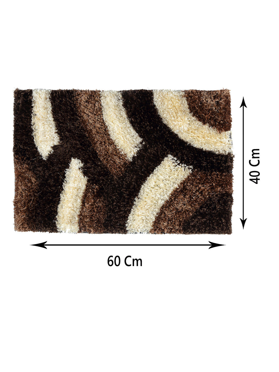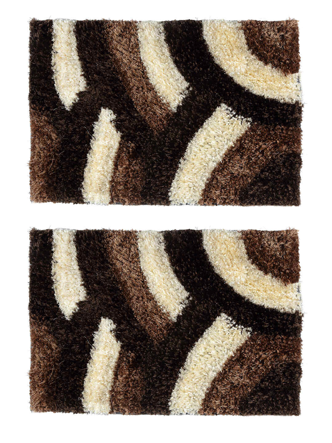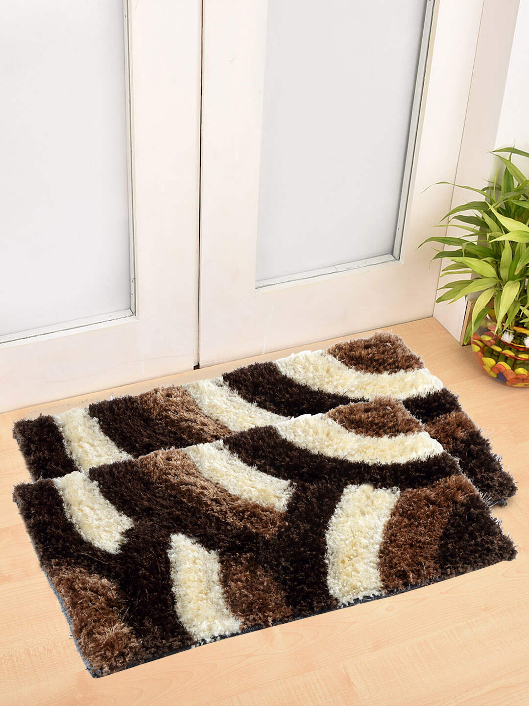 FABINALIV Set of 2 Brown Geometric Polyester Door Mats (60X40 cm)