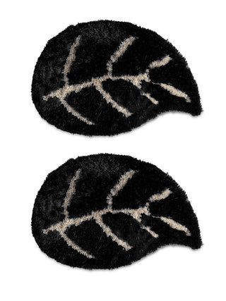 FABINALIV Set of 2 Black Floral Polyester Door Mats (62X42 cm)