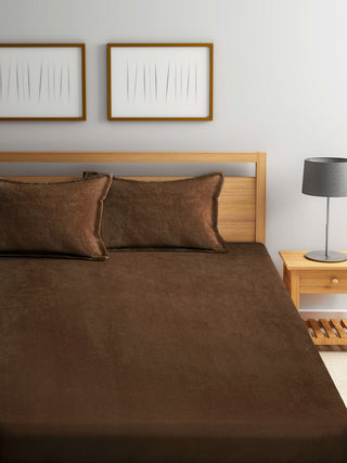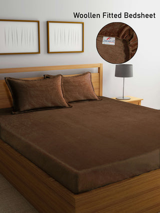 FABINALIV Chocolate Solid 300 TC Woollen King Size Fitted Double Bedsheet with 2 Pillow Covers