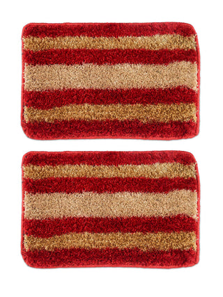 FABINALIV Set of 2 Red Striped Polyester Door Mats (60X40 cm)