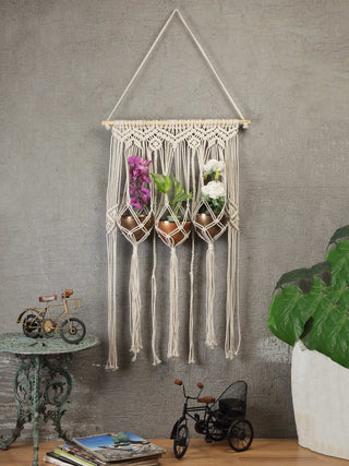 FABINALIV Off White Abstract Macrame Wall Hanging Flower Pot Organiser