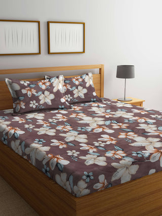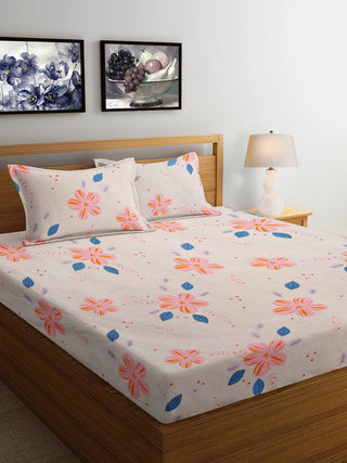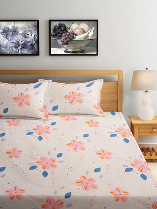 FABINALIV Multicolor Floral 300 TC Cotton Blend King Size Double Bedsheet with 2 Pillow Covers (250X225 cm)