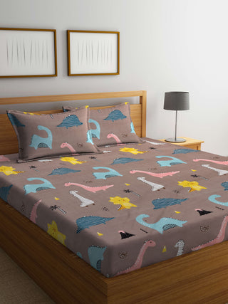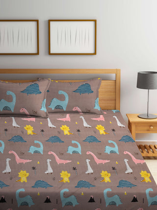 FABINALIV Multicolor Cartoon Print 300 TC Cotton Blend King Size Double Bedsheet with 2 Pillow Covers (250X225 cm)