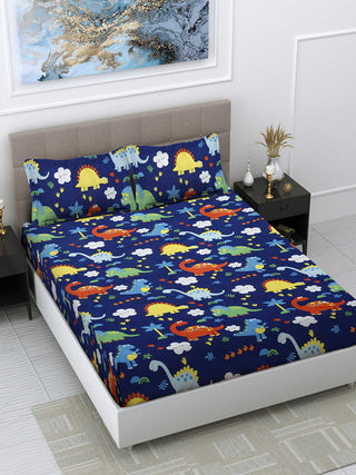FABINALIV Blue Cartoon Print 300 TC Cotton Blend King Size Double Bedsheet with 2 Pillow Covers (250X225 cm)