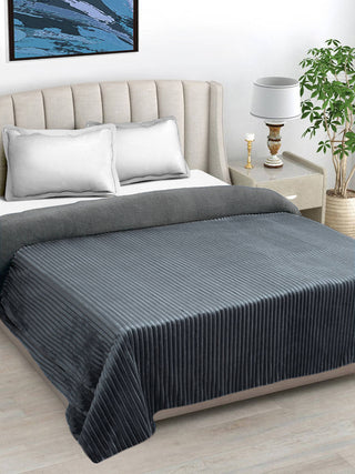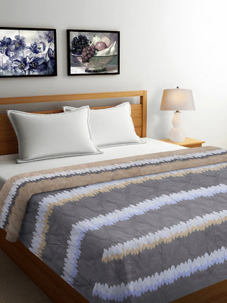 FABINALIV Grey Striped Woollen Mild Winter 450 GSM Double Bed Comforter