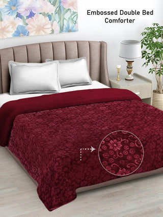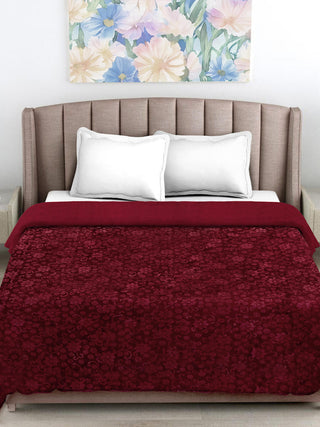 FABINALIV Maroon Floral Mild Winter 500 GSM Embossed Woollen Double Bed Comforter