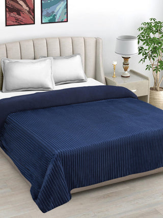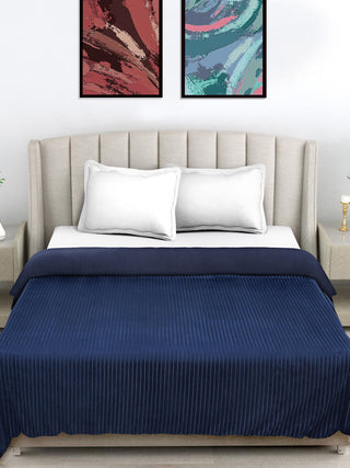FABINALIV NavyBlue Striped Mild Winter 450 GSM Micro Fiber Filling Double Bed Comforter
