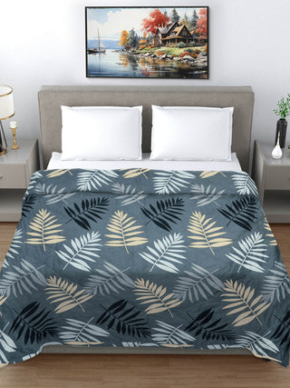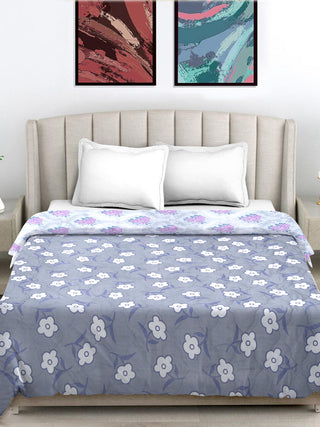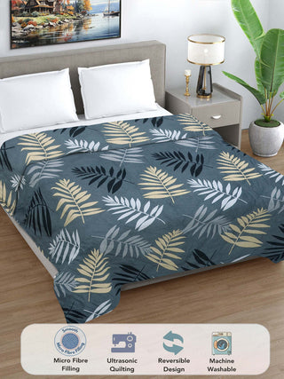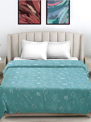 FABINALIV Turquoise Floral Reversible 350 GSM Micro Fiber Filling Double Bed AC Comforter