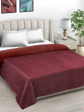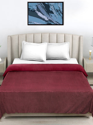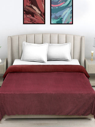 FABINALIV Maroon Striped Woollen Mild Winter 450 GSM Double Bed Comforter