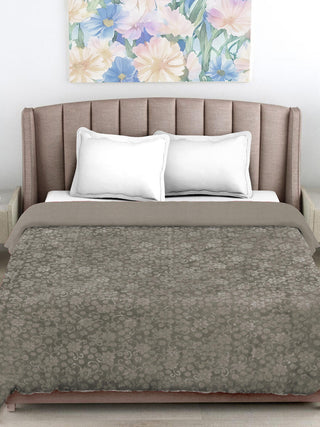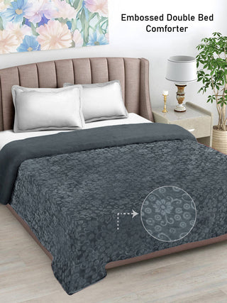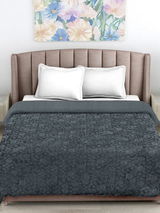 FABINALIV Dark Grey Floral Mild Winter 500 GSM Embossed Woollen Double Bed Comforter