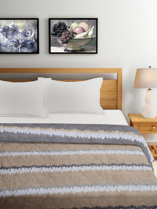 FABINALIV Brown Striped Woollen Mild Winter 450 GSM Double Bed Comforter