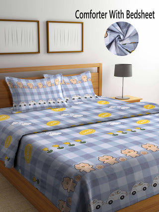 FABINALIV Multicolor Cartoon Print 350 GSM Micro Fiber Filling Comforter Bedding Set