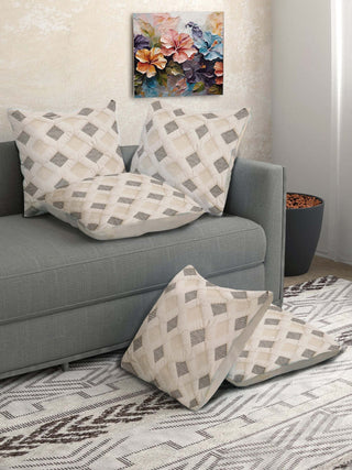 FABINALIV Set of 5 Cream Geometric Cotton Blend Square Cushion Covers (40X40 cm)