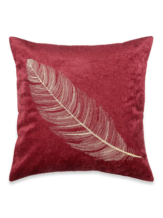 FABINALIV Set of 5 Maroon Floral Cotton Blend Square Cushion Covers (40X40 cm)