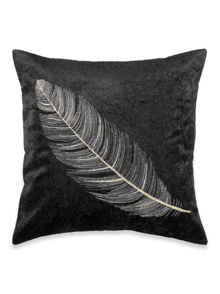 FABINALIV Set of 5 Black Floral Cotton Blend Square Cushion Covers (40X40 cm)