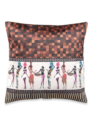 FABINALIV Set of 5 Brown Ethnic Cotton Blend Square Cushion Covers (40X40 cm)