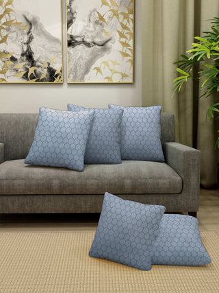 FABINALIV Set of 5 Blue Geometric Cotton Blend Square Cushion Covers (40X40 cm)