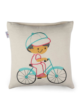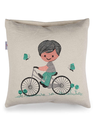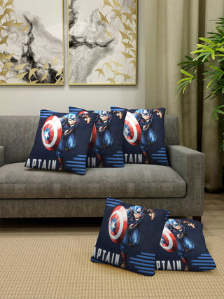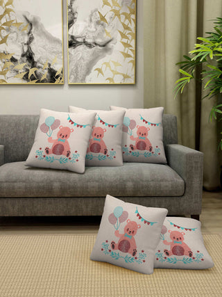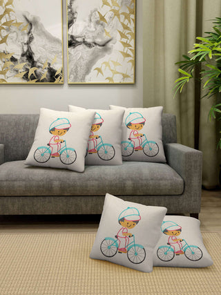 FABINALIV Set of 5 Blue Cartoon Print Cotton Blend Square Cushion Covers (40X40 cm)