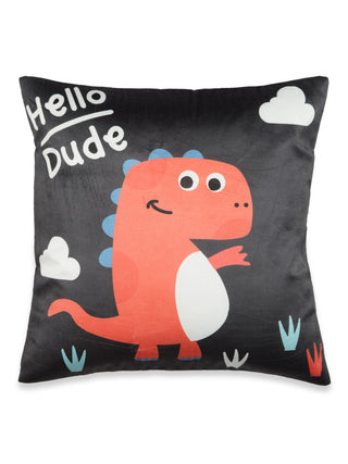 FABINALIV Set of 5 Black Cartoon Print Cotton Blend Square Cushion Covers (40X40 cm)