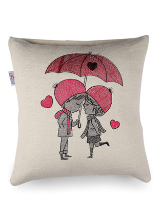 FABINALIV Set of 5 Off White 100% Cotton Embroidered Square Shape Cushion Covers (40X40 cm)
