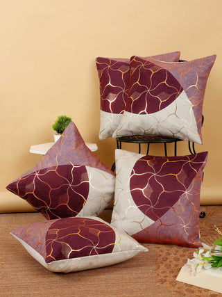 FABINALIV Set of 5 Maroon Floral Cotton Blend Square Cushion Covers (40X40 cm)
