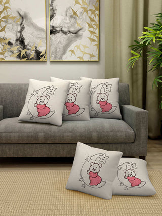 FABINALIV Set of 5 Off White 100% Cotton Embroidered Square Shape Cushion Covers (40X40 cm)