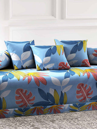 FABINALIV Multicolor Floral 300 TC Cotton Blend Diwan Set