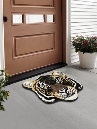 FABINALIV Black Floral Polyester Door Mat (62X42 cm)