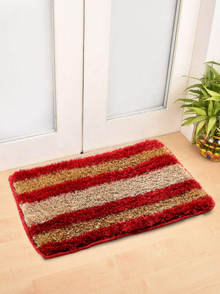 FABINALIV Red Striped Polyester Door Mat (60X40 cm)