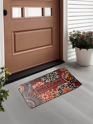 FABINALIV Multicolor Floral Polyester Door Mat (60X40 cm)