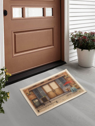 FABINALIV Brown Abstract Polyester Door Mat (60X40 cm)