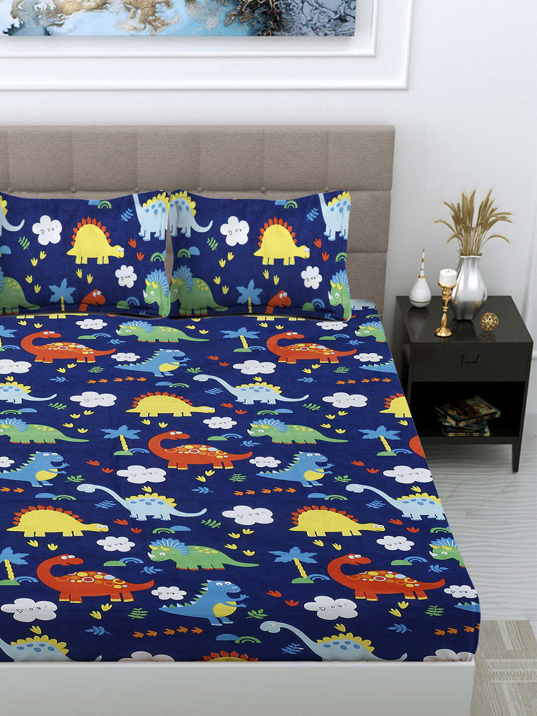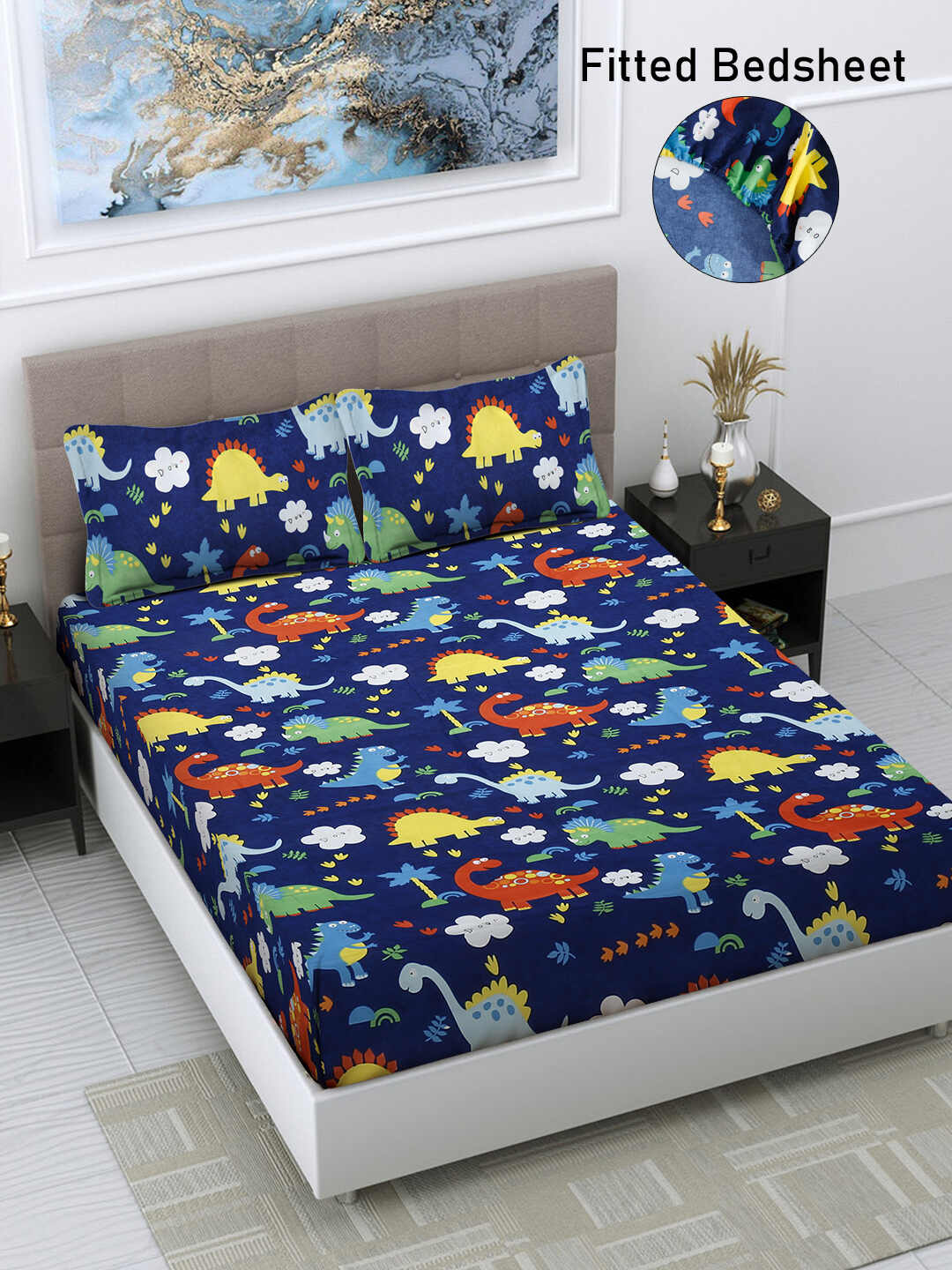 Set Content:- 1 Fitted Double Bedsheet with 2 Pillow Covers