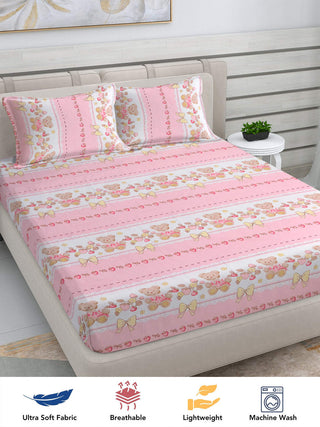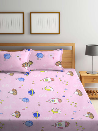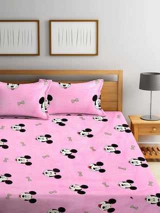 FABINALIV Pink Cartoon Print 300 TC Cotton Blend King Size Double Bedsheet with 2 Pillow Covers (250X225 cm)