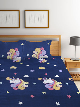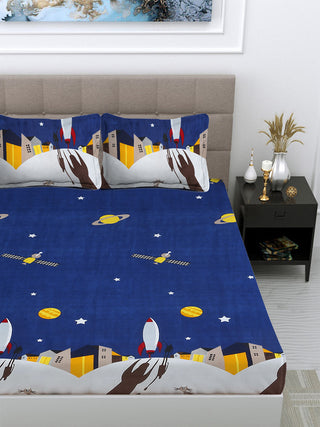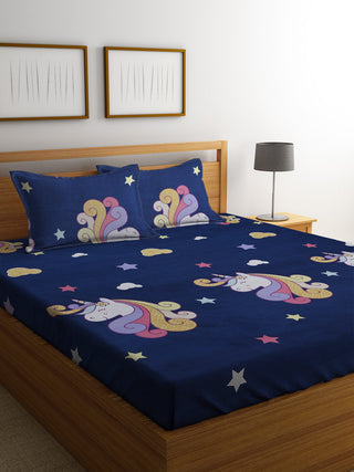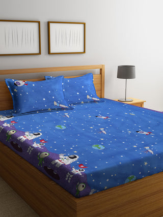 FABINALIV Blue Cartoon Print 300 TC Cotton Blend King Size Double Bedsheet with 2 Pillow Covers (250X225 cm)