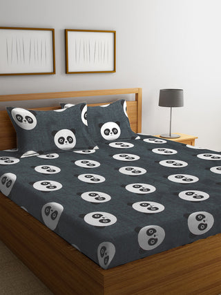 FABINALIV Grey Cartoon Print 300 TC Cotton Blend King Size Double Bedsheet with 2 Pillow Covers (250X225 cm)