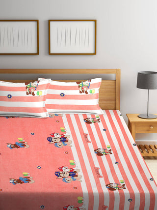 FABINALIV Peach Cartoon Print 300 TC Cotton Blend King Size Double Bedsheet with 2 Pillow Covers (250X225 cm)