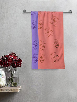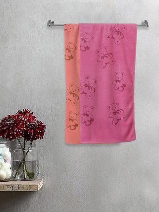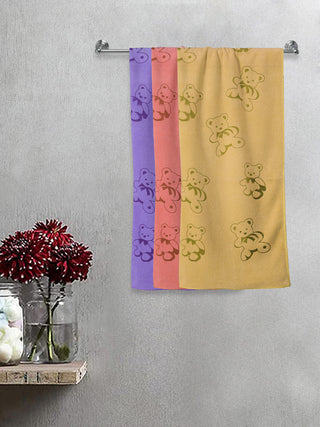 FABINALIV Set of 3 Peach Cartoon Print Cotton Kids Bath Towels (110X56 cm)