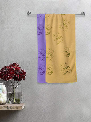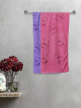 FABINALIV Set of 3 Purple Cartoon Print Cotton Kids Bath Towels (110X56 cm)