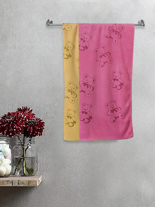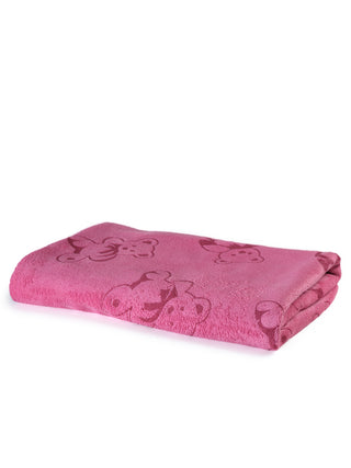 FABINALIV Set of 3 Pink Cartoon Print Cotton Kids Bath Towels (110X56 cm)
