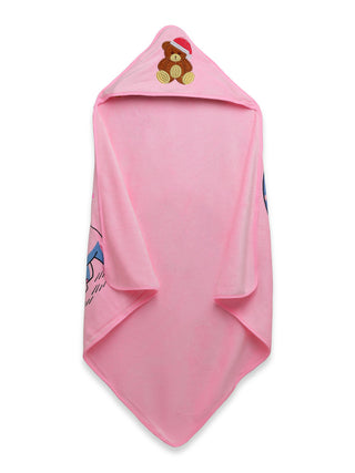 FABINALIV Infant Pink Cartoon Print Cotton Hooded Bath Towel (72X68 cm)