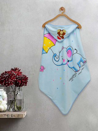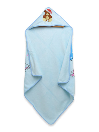 FABINALIV Infant Blue Cartoon Print Cotton Hooded Bath Towel (72X68 cm)