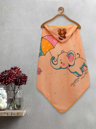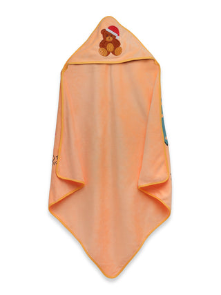 FABINALIV Infant Peach Cartoon Print Cotton Hooded Bath Towel (70X70 cm)