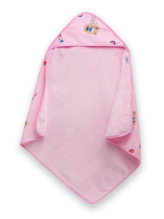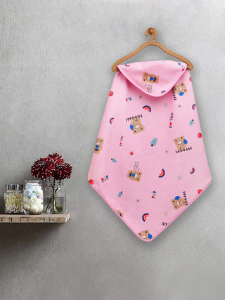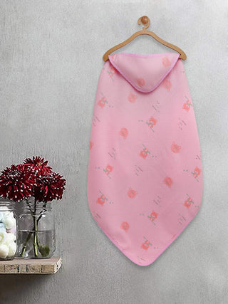 FABINALIV Infant Pink Cartoon Print Cotton Hooded Bath Towel (78X78 cm)