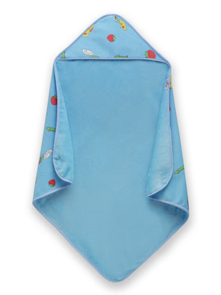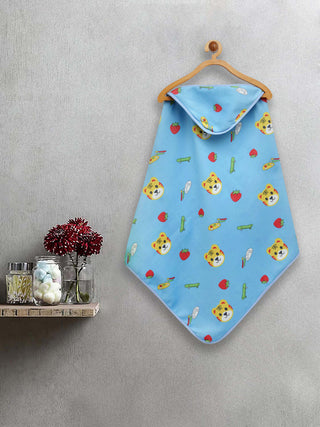 FABINALIV Infant Blue Cartoon Print Cotton Hooded Bath Towel (70X70 cm)
