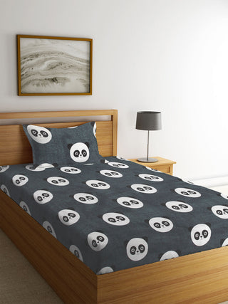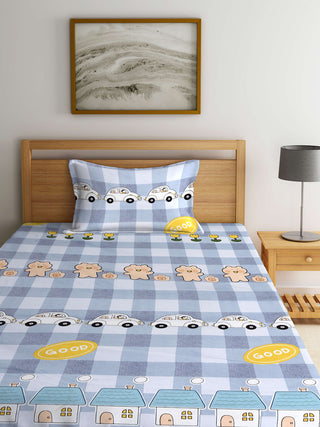 FABINALIV Grey Cartoon Print 300 TC Cotton Blend Single Bedsheet with Pillow Cover (225X150 cm)