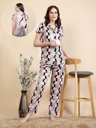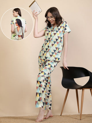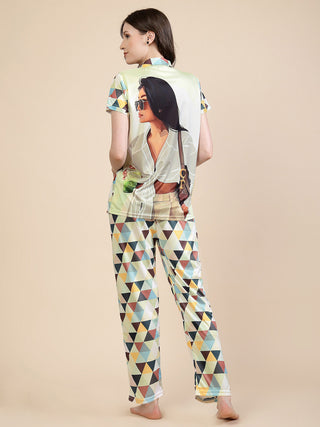 FABINALIV Multicolor Geometric Graphic Printed Women Night Suit