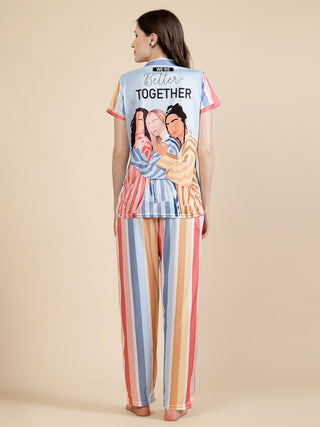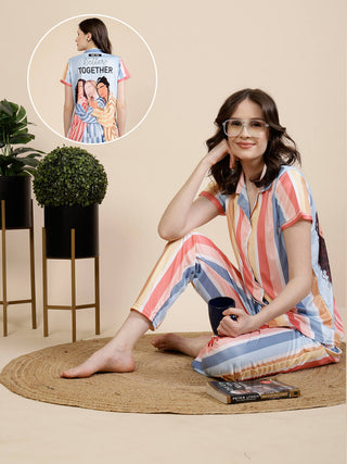 FABINALIV Multicolor Striped Graphic Printed Women Night Suit