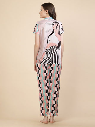 FABINALIV Multicolor Abstract Graphic Printed Women Night Suit