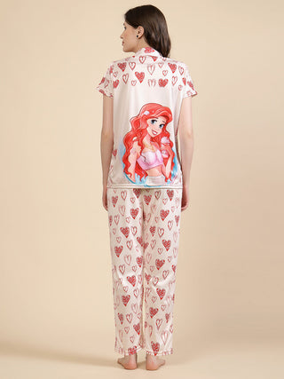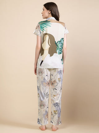 FABINALIV Cream Geometric Graphic Printed Women Night Suit